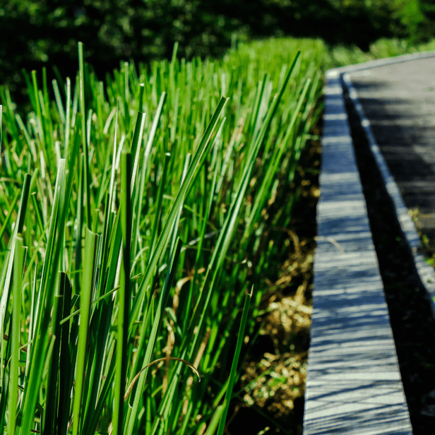 Vetiver's deep vertical roots create a robust barrier without encroaching on neighboring plants or seeking water sources, ensuring controlled growth.
